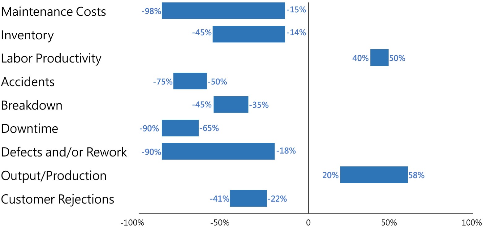 Regardless of the asset maintenance system adopted by an enterprise, the most important thing is to reflect on actual business performance indicators, such as maintenance costs and losses caused by unexpected downtime. According to past research, the implementation of asset management systems can reduce costs by at least 15%, significantly improve production efficiency by more than 40%, and reduce downtime by at least 35%, as shown in Figure 1. | |