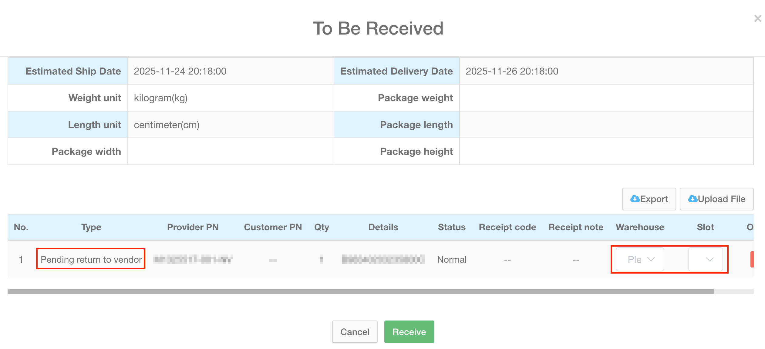 After the vendor returns the repaired products, service center can search for the corresponding order in “To Be Received.” Upon verification of product information, the products are received into the spare parts warehouse for subsequent customer warranty support.